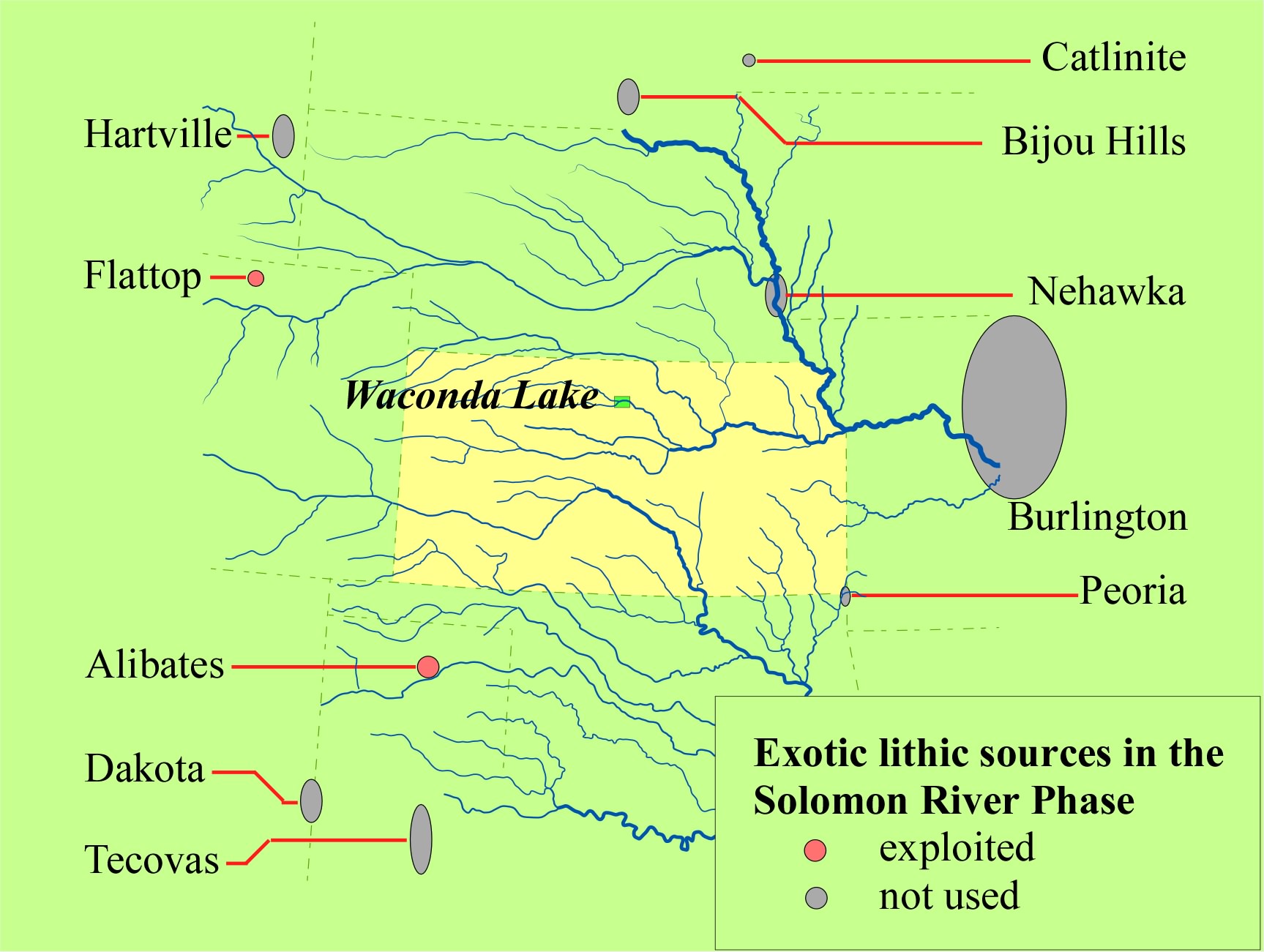 Solomon River phase sites appear at about A.D. 1030 and appear to disappear